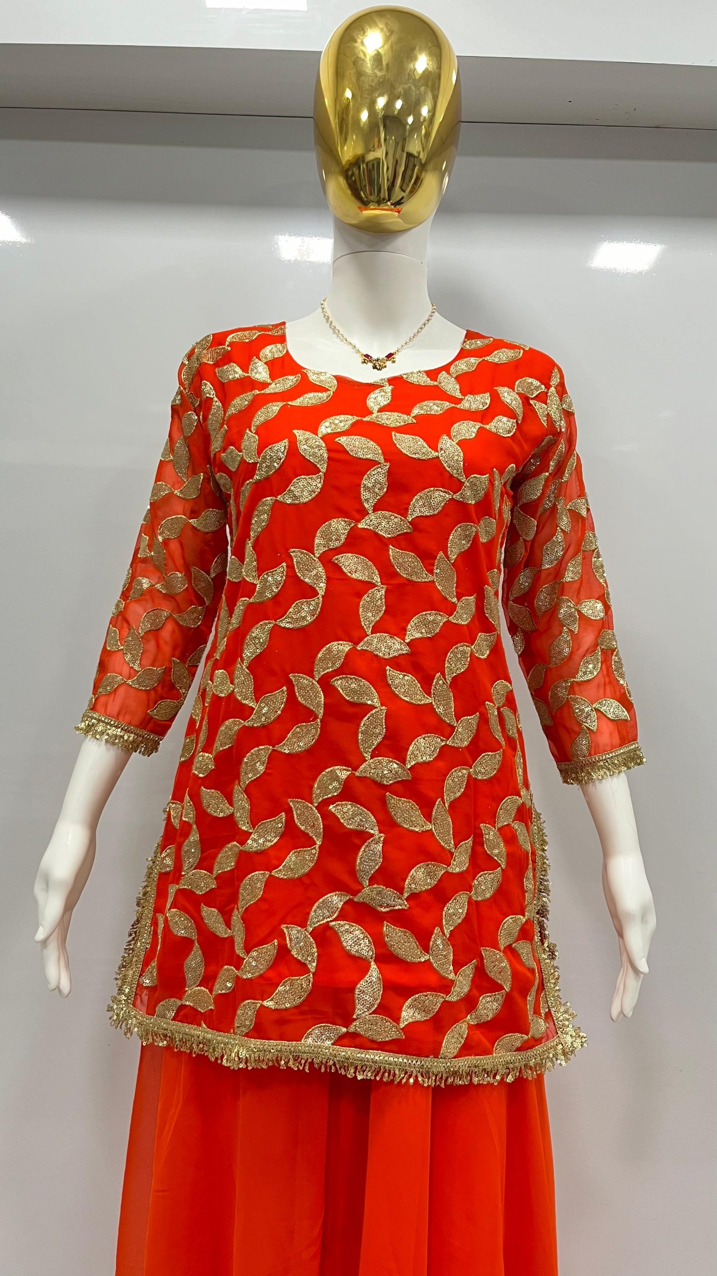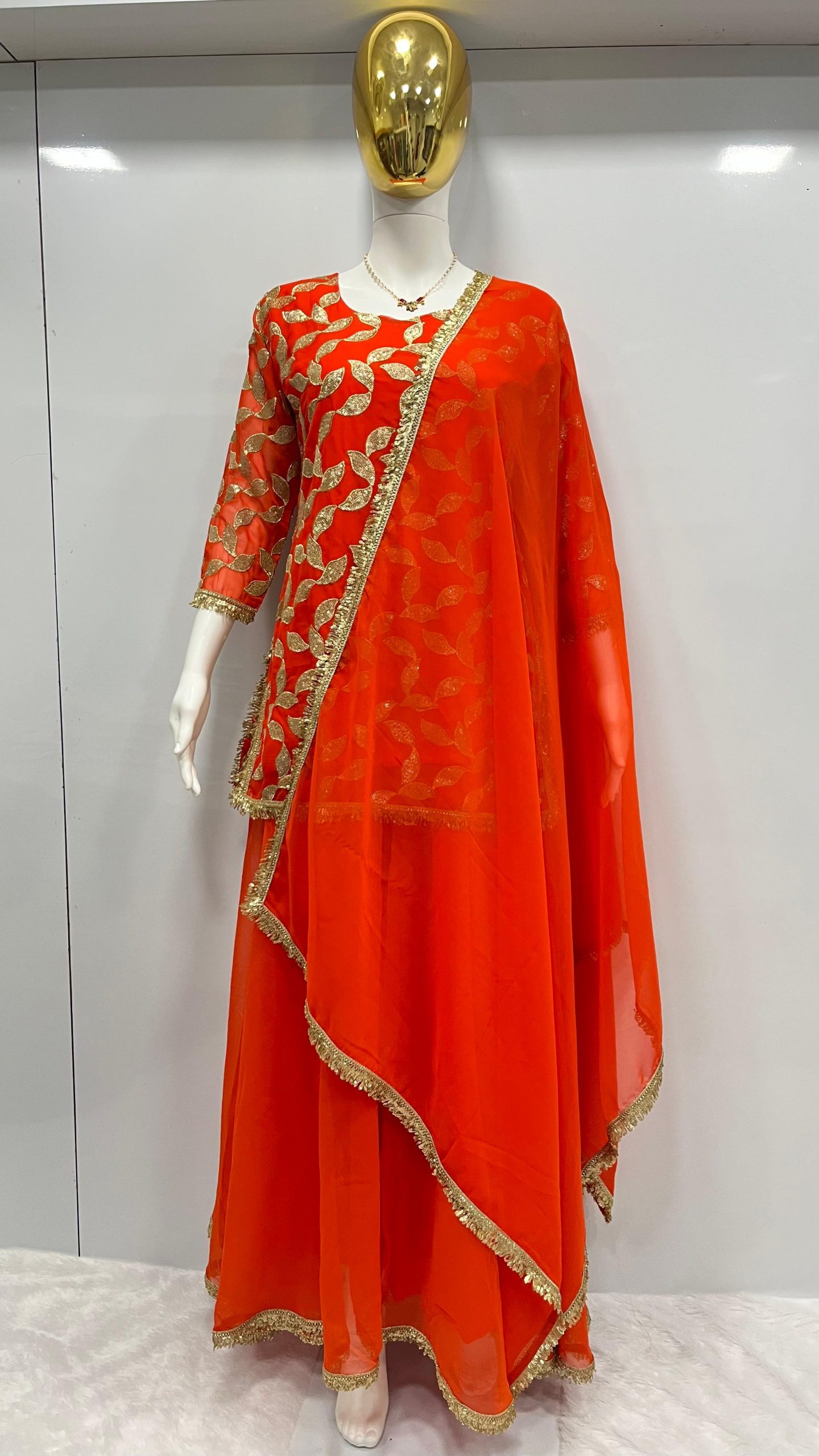 Be the first to review “ORANGE NEW LUNCH DESIGNER SEQUENCE EMBROIDERED WORK TOP AND LEHENGA WITH DUPATTA” Cancel reply